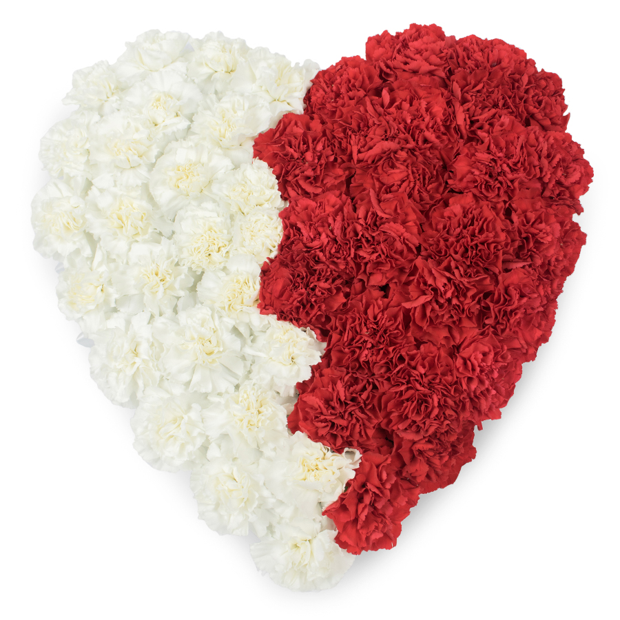 Show your heartfelt emotions with our graceful heart-shaped bouquet, beautifully arranged with white and red carnations. Each flower is hand-selected to maintain premium freshness and stunning appearance.